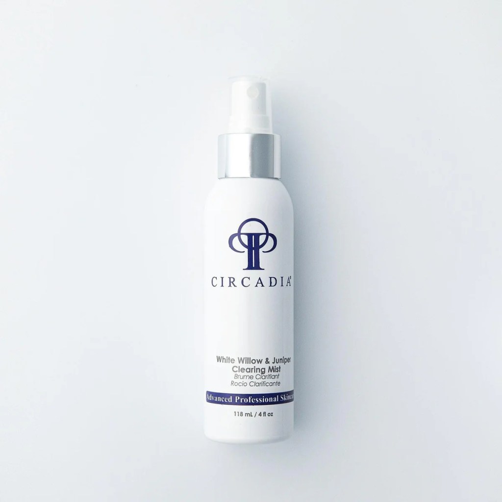 “A refreshing mist of white willow, juniper, red clover and meadowsweet extracts work to help reduce the appearance of oily skin and blemishes.”
